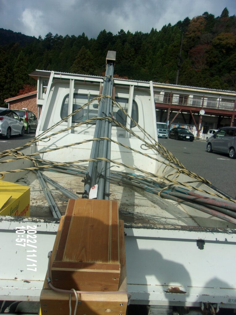 ツールに長尺物を入れて、ロープで縛るだけ。