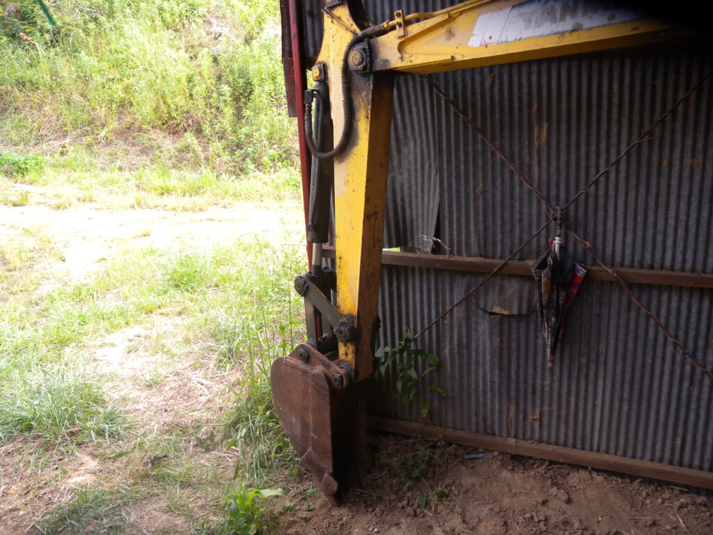 ・1人作業のため、アームは上げずに地面すれすれの場所で作業する。
