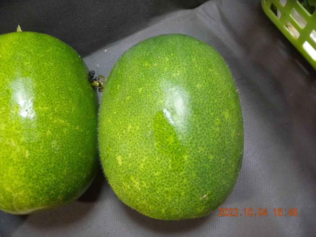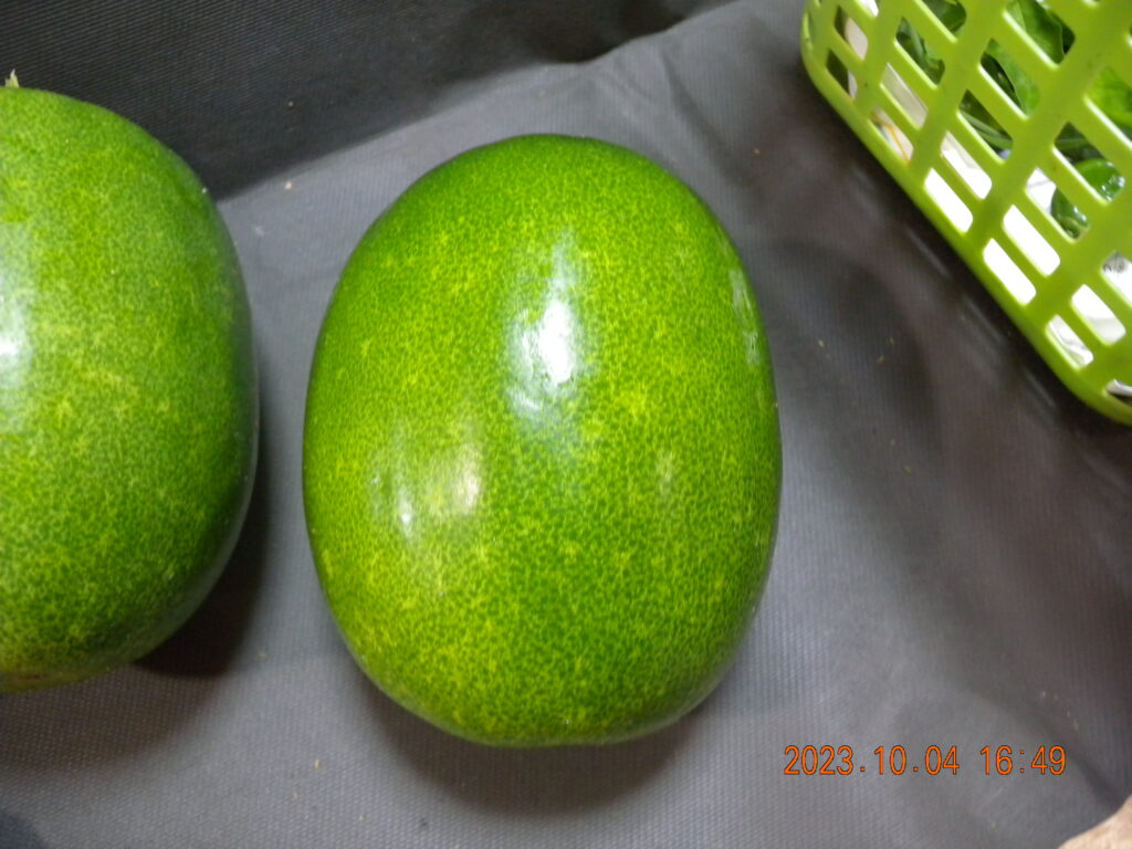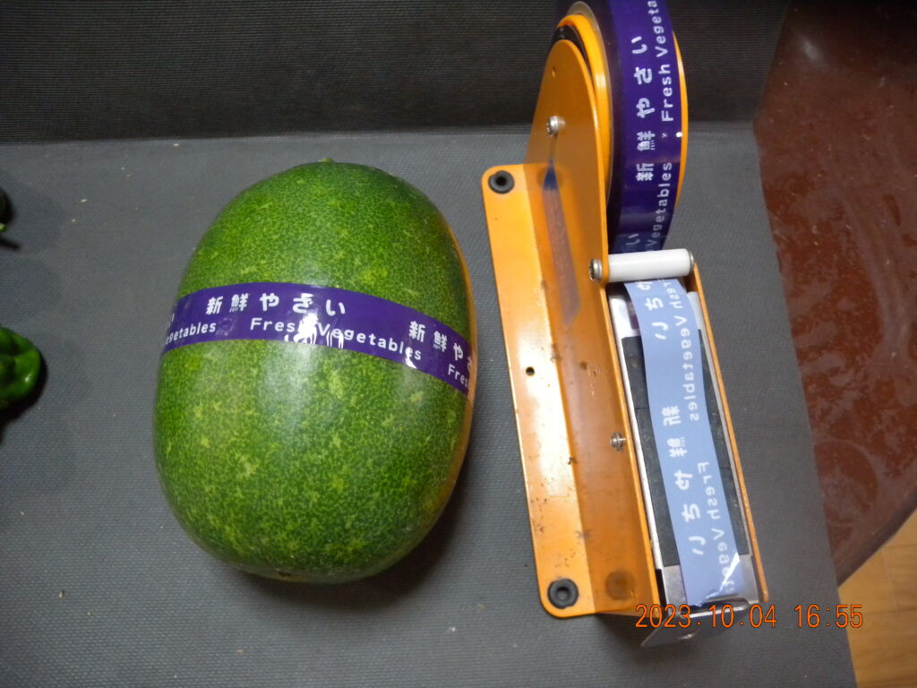 冬瓜の場合、皮に直接値札シールを貼ってもかぼちゃに比べれば剥がれ難いが微妙なライン。