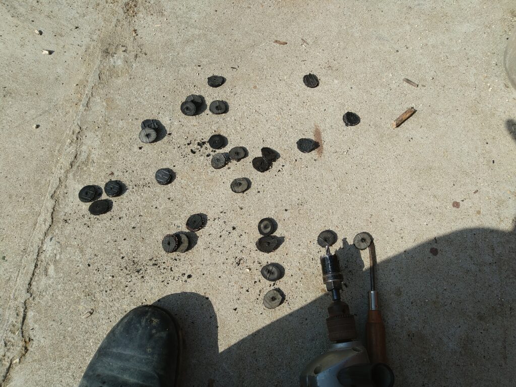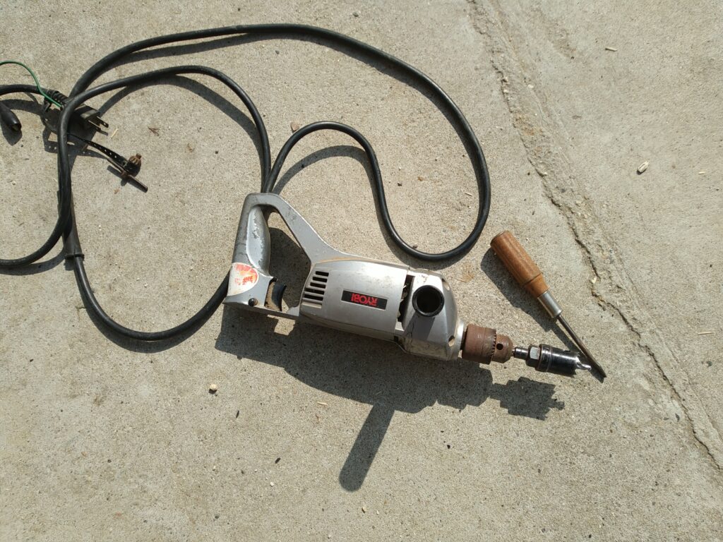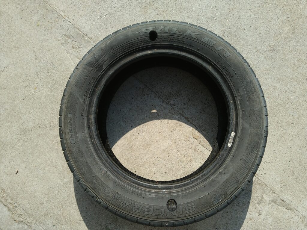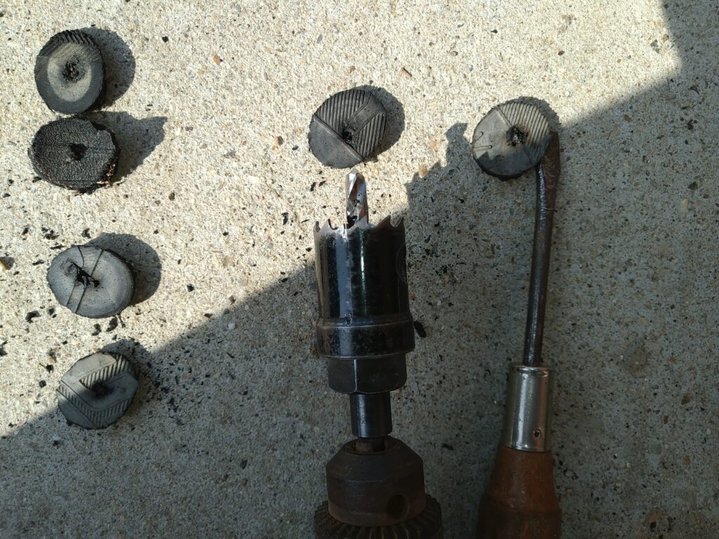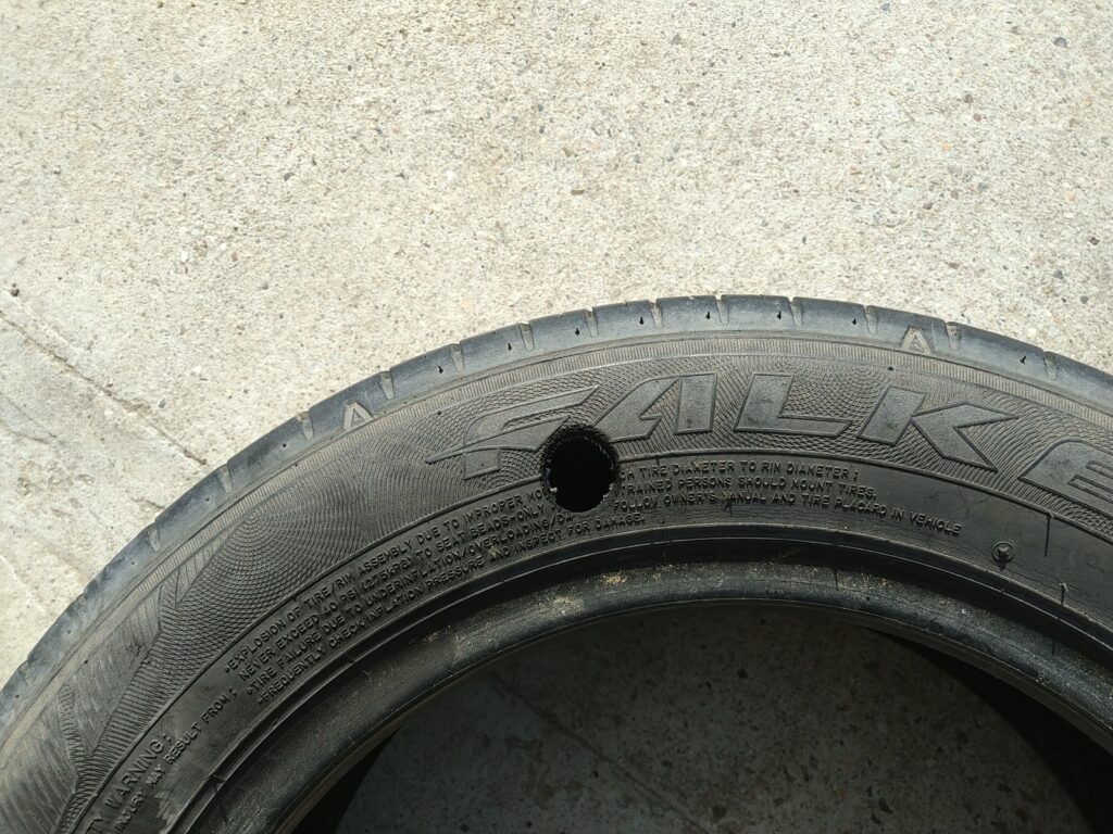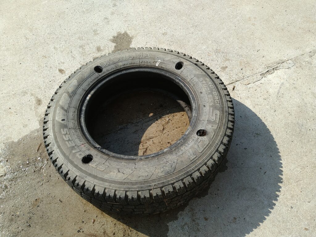 もうタイヤとしては使用しないのだから、思い切って穴を空けることにした。