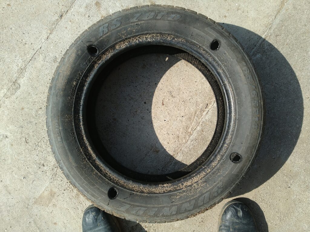問題は、タイヤを保管していると中に雨水が溜まってきて扱いが面倒になること。