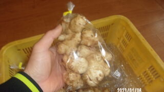 毎年1月頃に収穫し、しばらく保存して2月頃から出荷している。保存中にダメになるものもあり、このあたりは今後の課題としたい。米ぬかを主体とした肥料をまき出したころから甘味が増した。販売単位は基本的に2つ。ネトロン(赤いネット)に入れる。栗と同...